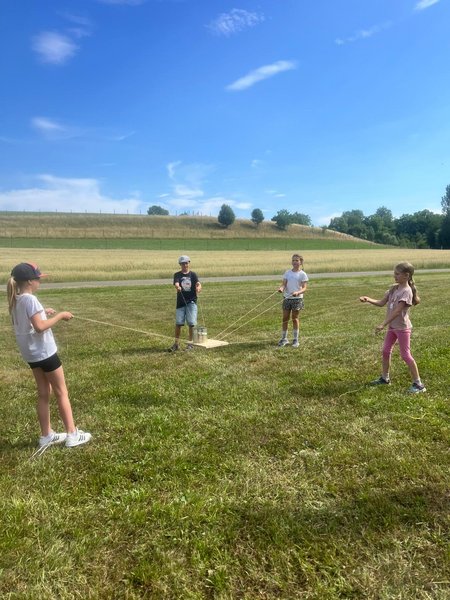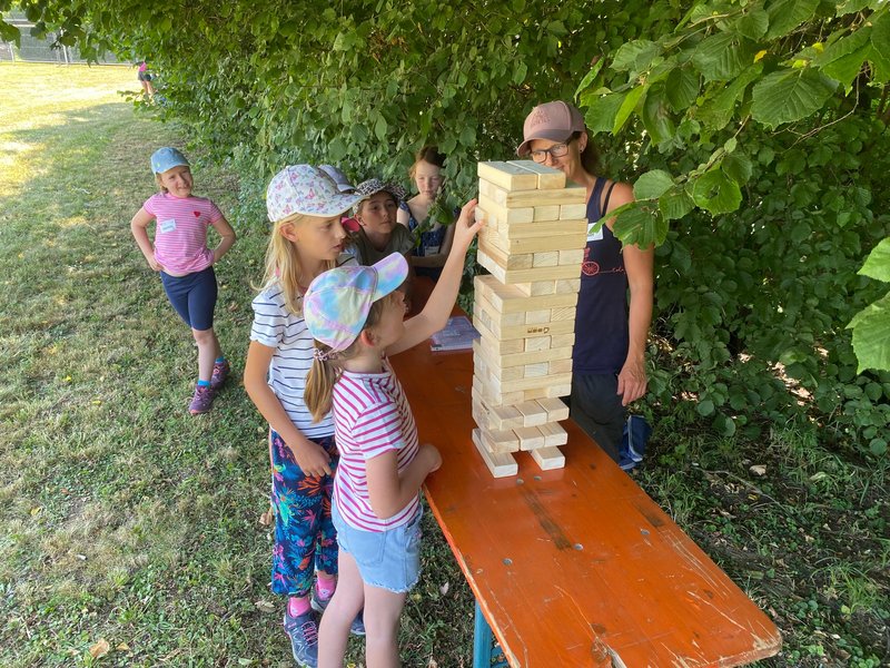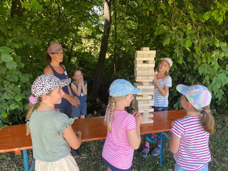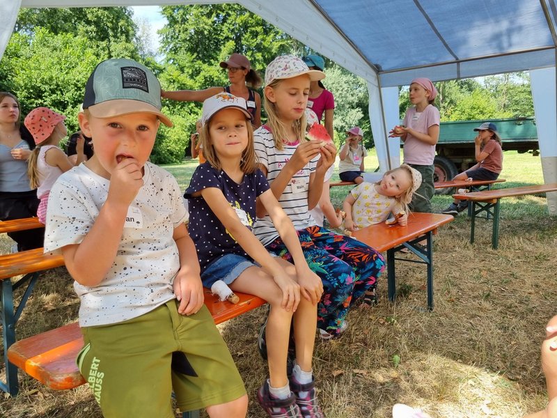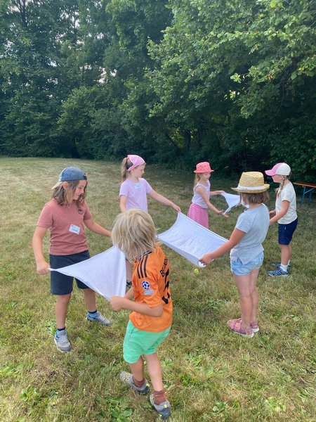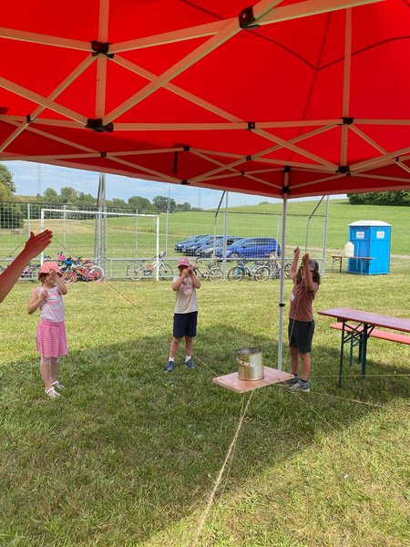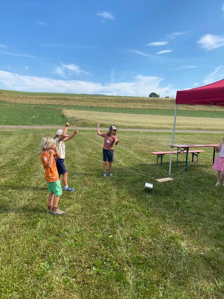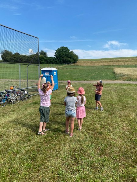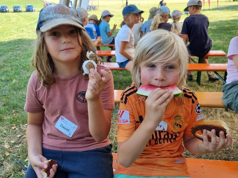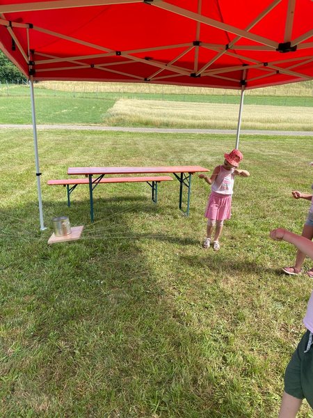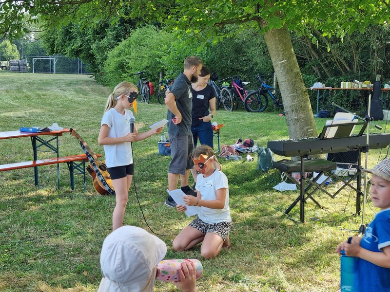 Am 5. Juli 2025 fand bei sommerlichen Temperaturen der Action Day auf der Sarawiese statt. In einem Anspiel führten der Rabe Rudi und der treue Schäferhund Tommy in die Geschichte vom „verlorenen Schaf“ ein. Anschließend durften die Kinder beim Geländespiel selbst aktiv werden. An verschiedenen Spielstationen mussten sie Materialien erspielen, um daraus ihr eigenes Schaf zu „züchten“ und damit zur Erweiterung der Schafherde beizutragen. Zwischendurch wurde gemeinsam gesungen. Zur Erfrischung und Stärkung gab es für alle Wassermelone. Zum Abschluss des gelungenen Tages wurde abends noch gemeinsam mit den Kindern und Eltern gegrillt – ein schöner Ausklang für einen erlebnisreichen Tag. Ein rundum gelungener Tag voller Spiel, Spaß und Gemeinschaft.