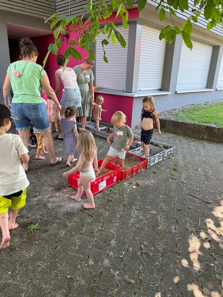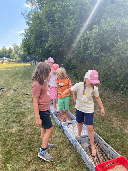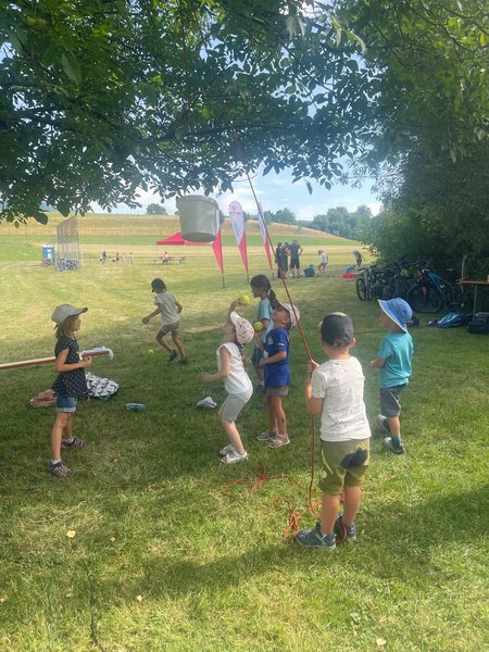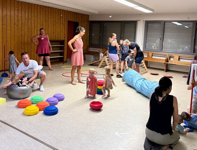 Sportlich, kreativ und voller guter Laune fand am 2. Juli 2025 der Mini Action Day statt. Zum Beginn der Veranstaltung tankten im Gemeindehaus die 0 bis 4- jährigen Kinder mit ihren Begleitpersonen Energie mit Brezeln, Hefezopf und Obst. Jeder Mensch und jedes Tier ist für unsere Gemeinschaft wichtig! Diese Botschaft wurde bildlich mit der Geschichte vom „verlorenen Schaf“ erzählt. Dazu wurde gesungen und durch die Überleitung zum Thema „Tiere“ verschiedene Geräusche und Bewegungen nachgeahmt. Danach konnten die Kinder mit ihren Begleitpersonen selbstständig die verschiedenen Stationen ablaufen, welche ebenfalls auf das Thema „Tiere“ abgestimmt waren. Es gab eine Tierdisco und Putzstation, einen Wissensbereich ebenso wie einen Barfuß- und Hindernisparcours. Bei der Kreativstation konnten Stoffrucksäcke mit Tiermotiven bemalt werden. Zum Abschluss wurde zusammen gegrillt.